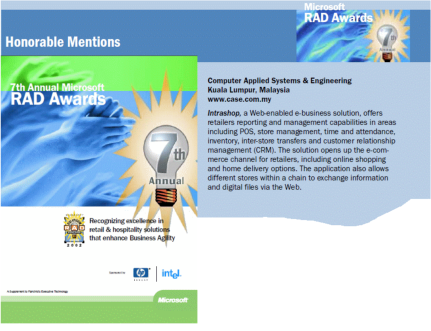 On May 2002, CASE's Intrashop? eBusiness Solution was selected as
